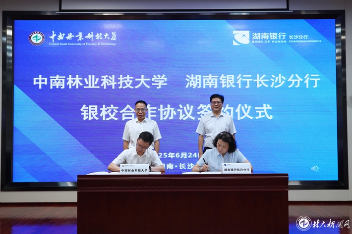 【林大网讯】(文/计划财务处)6月24日,我校与湖南银行银校合作协议签署仪式在湖南银行长沙分行举行。学校党委副书记王忠伟、湖南银行董事会秘书唐军共同见证签约仪式。