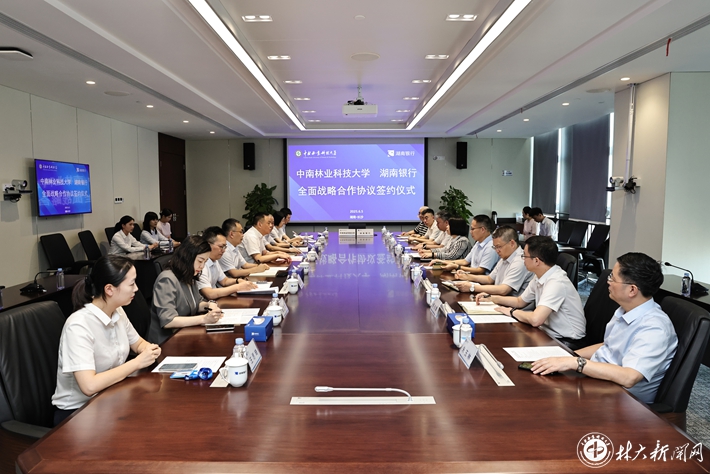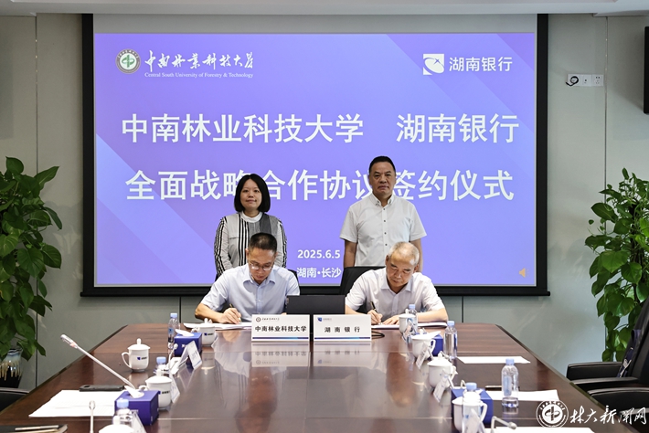 【林大网讯】(文/计划财务处)6月5日,我校与湖南银行战略合作协议签署仪式在湖南银行总部举行。我校校长仇怡、党委副书记王忠伟,湖南银行董事长黄卫忠、副行长李新华共同见证签约仪式,双方就深化银校合作开展深入交流。