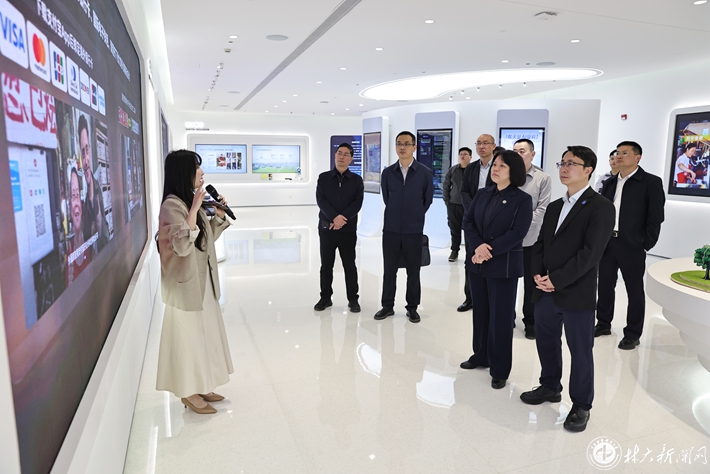 仇怡一行参观了企业展厅和办公区域,深入了解公司在数字科技、数字支付、数字金融、数字互联等方面的应用和发展情况。