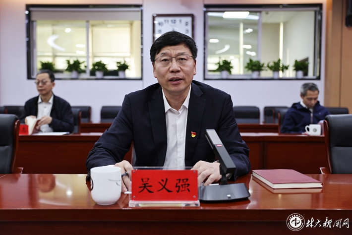 ▲中国工程院院士、校党委书记吴义强主持会议并讲话