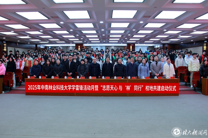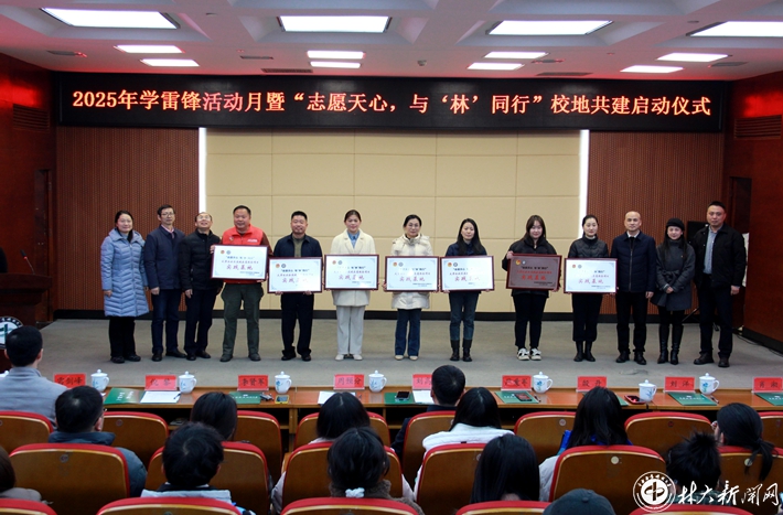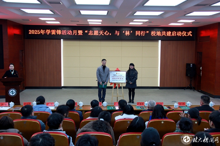 ▲学校举行学雷锋活动月暨“志愿天心 与‘林’同行”校地共建启动仪式