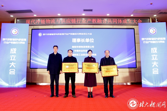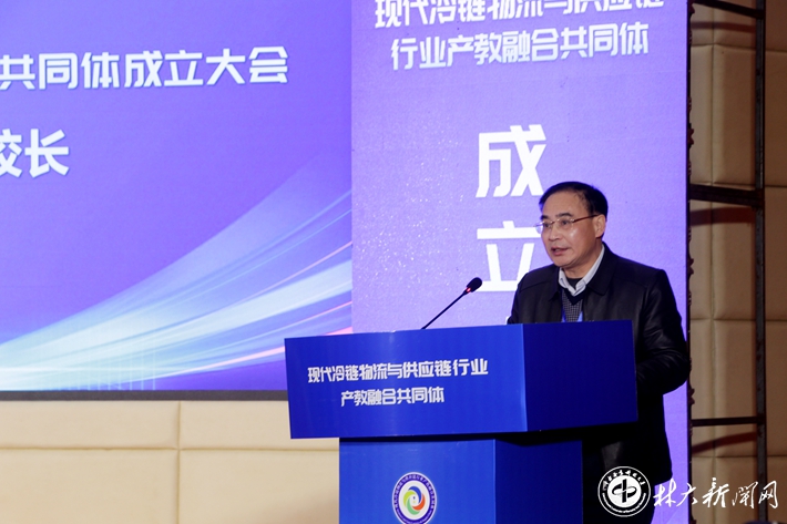 【林大网讯】(文/物流学院 戴子若)1月11日,由我校牵头参与,全国104家企业、高校、科研机构共同发起的“现代冷链物流与供应链行业产教融合共同体”成立大会在湖南衡阳举行。学校副校长尹健出席会议并讲话。