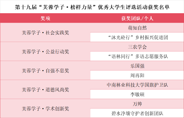 ▲第十九届“芙蓉学子•榜样力量”优秀大学生颁奖典礼