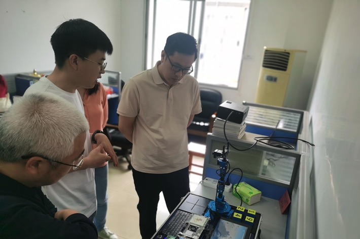 ▲ 与团队成员进行人工智能综合实验方案研讨