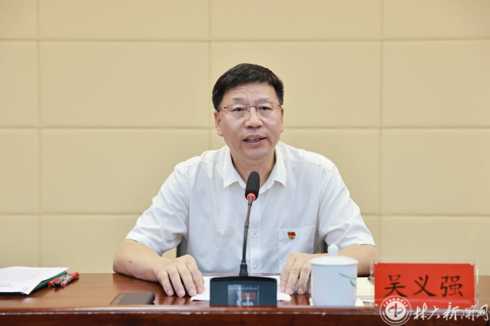 ▲中国工程院院士、校党委书记吴义强主持会议并讲话