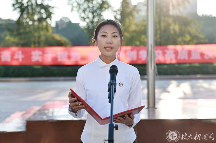生命与环境科学学院学生胡雯婷作为学生代表发言,她表示,要主动把个人理想融入党和国家事业、融入时代主题,发奋学习、矢志创新,把爱党爱国、爱校荣校的情怀融入日常学习生活之中,在实现中国式现代化新征程上,谱写出青春奋斗的时代华章。