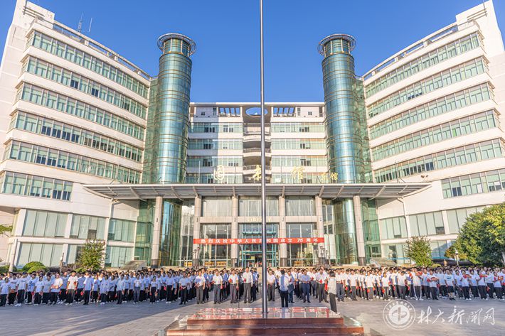 “五星红旗迎风飘扬,胜利歌声多么嘹亮……”迎着鲜艳的五星红旗,千余名师生深情合唱《歌唱祖国》,表达对祖国的赤诚与热爱,展现与祖国共奋进、共成长,为实现中华民族伟大复兴的中国梦而努力奋斗的决心和信心。(一审/李佳 二审/廖乐平 三审/周预分)