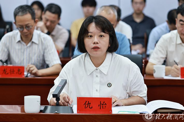 ▲党委副书记、校长仇怡介绍学校贯彻落实总书记重要回信精神相关情况