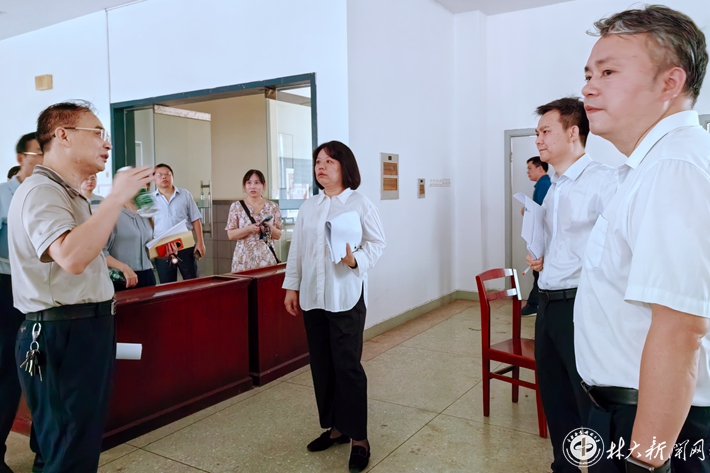【林大网讯】(文/党政办综合)近日,中国工程院院士、学校党委书记吴义强,校长仇怡带队,分别利用两整天时间,冒着酷暑、顶着烈日,深入学校各楼栋、实验室、学生宿舍、图书馆、体艺馆等场所,现场调研和督导学校暑期基本建设及公用房搬迁等重点工作。党委副书记王忠伟、纪委书记杨鑫铨,副校长尹健、尹双凤、周小毛分阶段参加调研和检查。