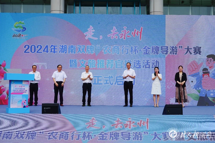 ▲2024年湖南双牌“农商行杯·金牌导游”大赛暨文旅推荐官推选活动启动仪式在我校举行