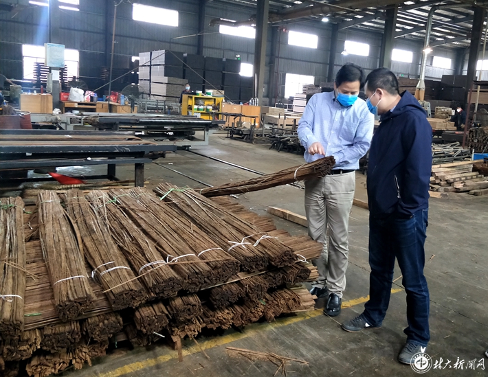 李新功深刻践行着“把论文写在祖国大地上”的号召。他积极推动科技成果转化,服务区域经济社会高质量发展。为了将创新成果更快更好地应用于实践,他带领支部党员和科研团队深入湖南、广西等地的50余家重要木竹加工企业,开展技术咨询、成果推广和帮扶工作。