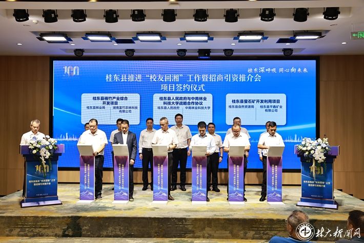 为推动合作项目落地落实,在桂东县推进“校友回湘”工作暨招商引资推介会上,桂东县人民政府与中南林业科技大学现场签署战略合作协议,标志着校地合作进入全方位、深层次推进的新阶段。