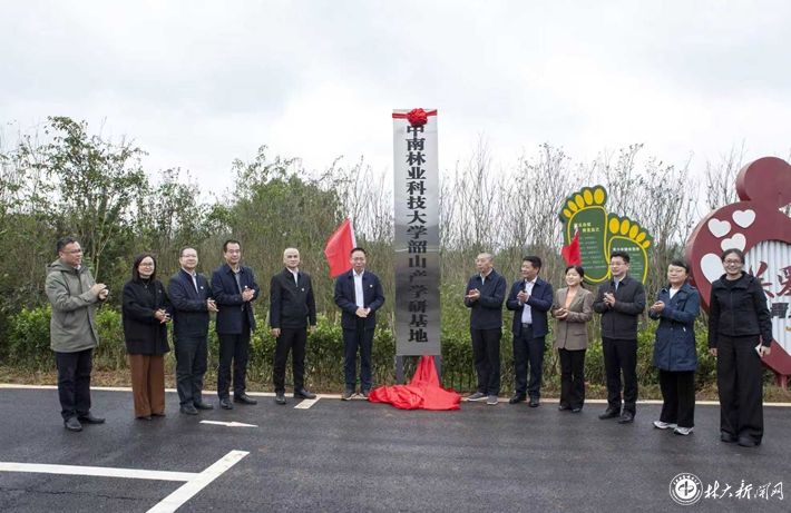 【林大网讯】(文/校友事务与发展联络处)10月21日,中南林业科技大学韶山产学研基地揭牌仪式在银田镇宏发苗木基地举行。学校党委副书记王忠伟,湘潭市人民政府副秘书长章礼华,韶山市副市长成华等出席仪式并共同为基地揭牌。