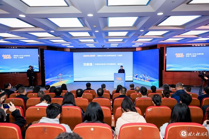 【林大网讯】(文/校团委)10月29日,由共青团湖南省委联合中共湖南省委网信办、湖南省教育厅、湖南省公安厅、湖南省司法厅、湖南省卫生健康委共同主办的“青春护航·与法同行”湖南省大学生法律风险防范“大课堂”启动仪式在学校立德厅举行。学校副校长刘高强出席仪式并致辞,校团委、法学院等部门(单位)负责人及300余名学生参加活动。