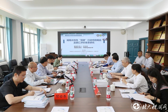 【林大网讯】(文/南方林业生态应用技术国家工程实验室)4月28日,湖南省水利厅在我校组织召开省水利科技重大项目“湖南水利在‘双碳’行动中的响应及碳汇评价体系研究”验收会。省水利厅副厅长尹黎明,科技与对外合作处一级调研员薛勇、三级主任科员钟乐,学校副校长闫文德出席会议。项目验收专家、项目承担单位和协作单位负责人、各课题负责人及技术骨干等通过线上线下结合的形式参加会议。