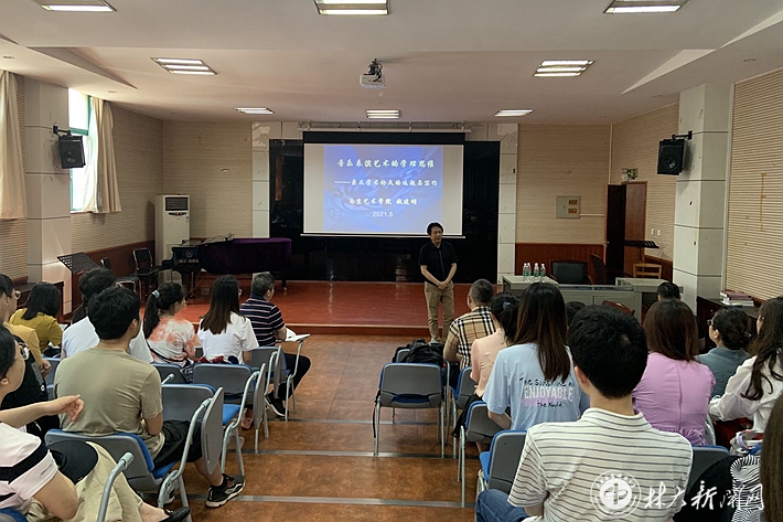 【林大网讯】(文/音乐学院 李祖胜)5月14日上午,南京艺术学院钱建明教授受邀为音乐学院师生作了题为“音乐表演艺术的学理思维---兼及学术论文的选题与写作”的专题讲座,学院部分教师和硕士研究生到场聆听。