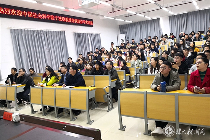 会上,于法稳教授作了一场题为《乡村生态振兴与农村产业发展问题》的学术讲座,介绍了乡村生态振兴的背景、内涵及标志,从农村生态环境保护、农业生产环境改善和农村人居环境整治三个方面详细阐释了乡村生态振兴的具体内容。他建设性地提出了中国农业高质量发展的方向。针对师生的提问,于教授耐心详细地解答。