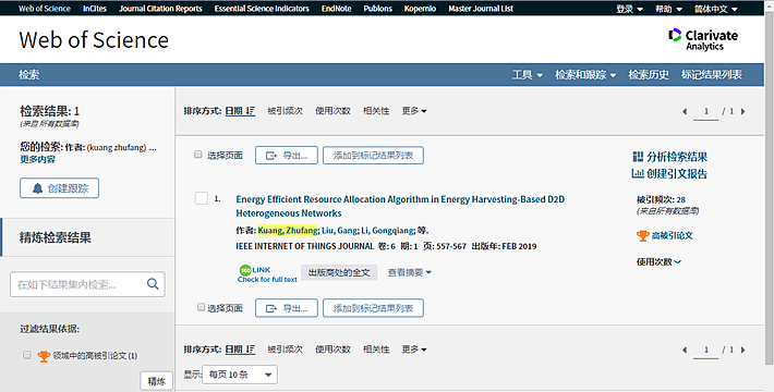 该成果于2019年2月发表在计算机学科国际顶级期刊之一的IEEE Internet of Things Journal(中科院一区,JCR一区期刊,影响因子9.515),针对物联网的“智慧+”应用场景,从理论角度深入研究了5G中终端直通通信的资源管理问题,给出了可靠的优化结果,对将来在物联网应用中降低系统能耗有着积极的指导意义。
