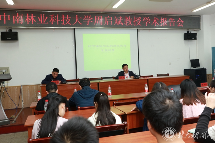 受聘仪式结束后,周启斌做了题为《松节油深加工利用现状与发展趋势》的学术报告,他详细介绍了松节油深加工产品的市场需求状况、国内外生产现状,并对该产业的未来发展趋势进行了展望。(编辑/陈名虎 杨艺婷 李昱辉)
