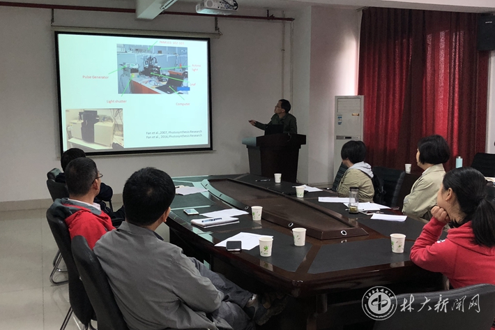 【林大网讯】(文/生科院 段酬苍)近日,澳大利亚国立大学樊大勇副研究员应邀在南方林业生态应用技术国家工程实验室作了题为“Tracking the fate of absorbed light photons in photosynthesis – in vivo measurement of electron fluxes and regulation” 的学术报告。