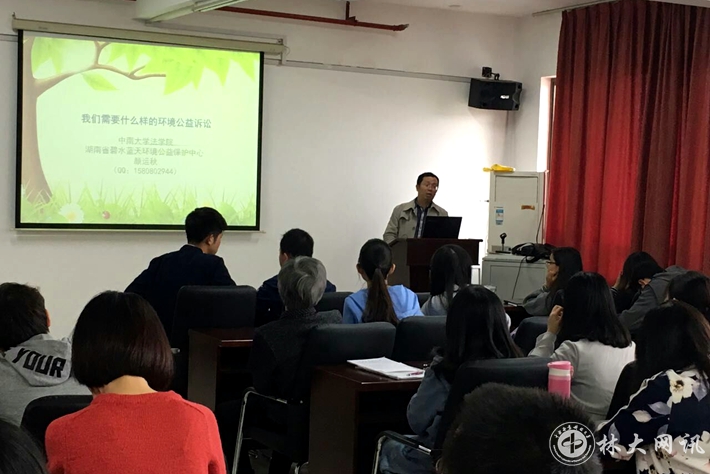 【林大网讯】10月24日下午,应湖南绿色发展研究院办公室主任孙凤英教授邀请,中南大学法学院博士生导师、环境公益诉讼专家颜运秋教授来我校讲学。