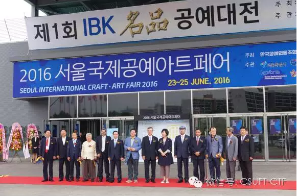 2016韩国首尔国际工艺美术与艺术博览会举行开幕式,多位国会议员参加,下午4点出席韩中日工艺与技术国际研讨会,并发表《中国工艺美术产业现状》的学术报告。