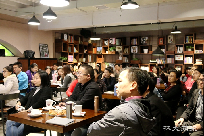 【林大网讯】4月6日下午,我校政法学院胡萍教授应外国语学院邀请在“红楼5语”咖啡书吧讲学。本次讲学的主题为“记下乡音、留下乡愁-中国语言资源保护工程简介与实践”,这是外国语学院“红楼论坛·跨界”2016年第1期。活动由外国语学院院长邓联健主持。