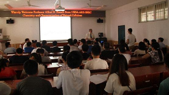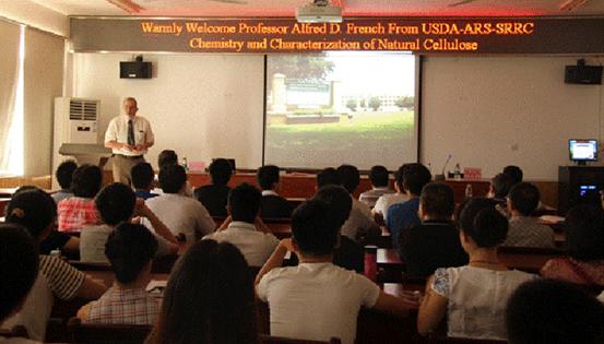5月24日上午,应我校材料科学与工程学院、木材科学与技术国家重点学科和林业工程湖南省重点学科的邀请,美国农业部Alfred D.French教授来我校进行了学术交流并作学术报告。报告会在逸夫楼540举行,由材料科学与工程学院副院长袁光明主持。材料科学与工程学院相关领导、老师和学生近百人参加报告会。