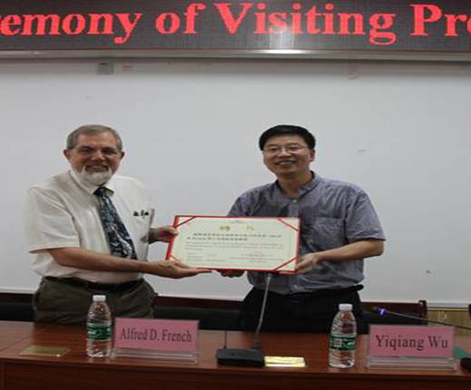 lfred D. French教授简介:美国农业部农业研究服务中心——南部地区研究化学家,法国国家农业研究学会会员,奥地利自然资源和生命科学大学客座教授。1965年获得美国爱荷华州立大学化学专业学士学位,1971年获美国亚利桑那州立大学物理化学博士学位。现担任国际知名期刊Cellulose(SCI二区,影响因子3.033)主编、Journal of Carbohydrate Chemistry 编委委员,美国化学会纤维素和可再生材料分会主席,第三届国际纤维素会议顾问,美国新奥尔良市碳水化合物研讨会组织委员。French教授在碳水化合物结构、纤维素存储、纤维素生物化学、纤维素晶体等方面开展了丰富的研究,先后在国际知名期刊上发表学术论文100余篇。与美国新奥尔良大学、美国橡树岭国家实验室、美国明尼苏达大学等多所高校和研究所建立了合作关系。(文/材料学院 编辑/杨一)