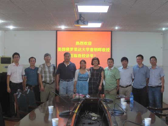 7月26日上午,应我校国家林业局生物乙醇研究中心的邀请,美国佛罗里达大学童朝晖教授来我校进行了学术交流并作学术报告。报告会在生科楼A座603会议室举行,由生命科学与技术学院副院长曾柏全主持,国家林业局生物乙醇研究中心主任陈介南介绍童朝晖教授的学术经历及主要成果。生命科学与技术学院、材料科学与工程学院、国家林业局生物乙醇研究中心等相关教师和学生近40人参加了报告会。
