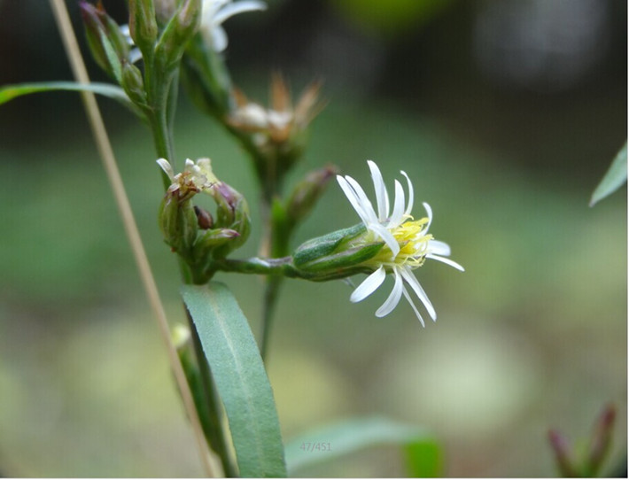 带有洁白银丝花瓣的钻叶紫菀 葉子 摄