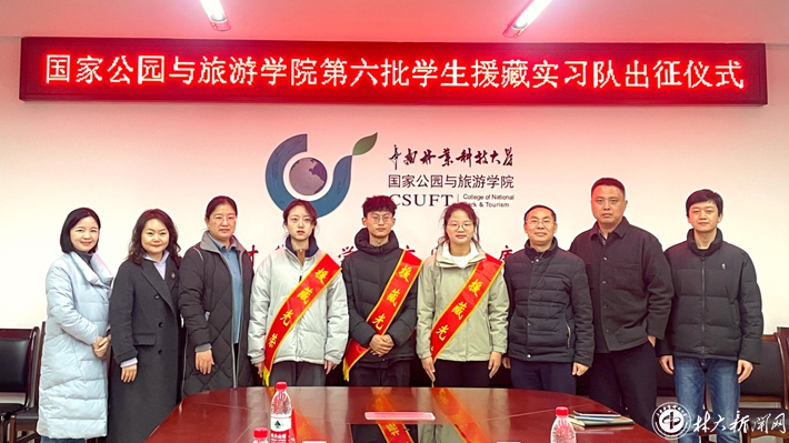 【林大网讯】(文/国家公园与旅游学院)近日,国家公园与旅游学院举办援藏援疆干部人才欢送会和第六批学生援藏实习队出征仪式,欢送即将奔赴新疆的贺江华老师、奔赴西藏的严伟宾老师和三位实习生。学校组织部、宣传统战部、学生工作部、招生就业处、团委相关负责人出席有关活动。