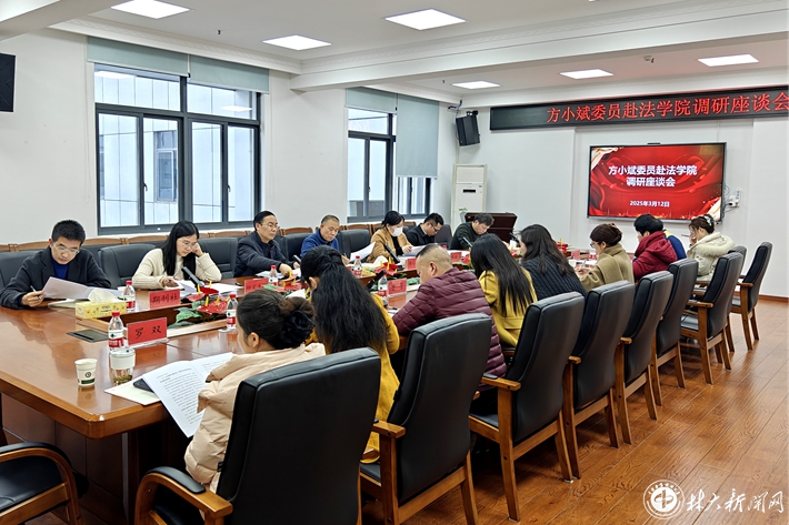 党政办公室、宣传统战部、教务处、人事处、研究生院、期刊社等部门负责人及法学院班子成员、师生代表参加座谈。(一审/杨家伟 二审/廖乐平 三审/周预分)
