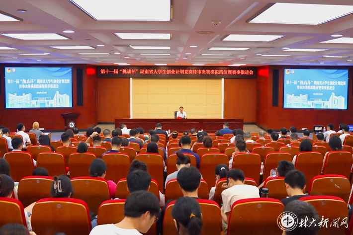 ▲学校召开第十一届“挑战杯”湖南省大学生创业计划竞赛终审决赛模拟路演暨赛事推进会
