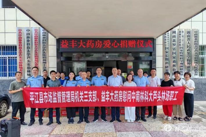 【林大网讯】(文/芦头实验林场)7月9日,益丰大药房向芦头实验林场捐赠了一批价值6万元的药品和物资。捐赠仪式在林场举行,益丰大药房连锁股份有限公司总经理助理熊建波、平江县市场监督管理局副局长万军龙出席仪式并讲话,林场负责人李志强主持仪式。