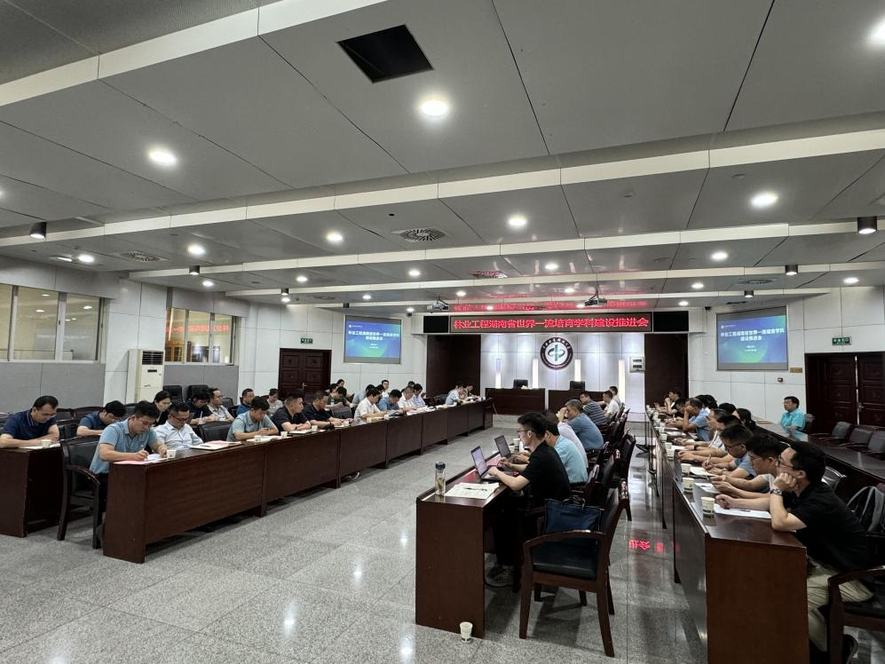 【林大网讯】(文/材料科学与工程学院)7月20日下午,学校在崇德楼四楼4会议室召开林业工程湖南省世界一流培育学科建设推进会。学科建设与发展规划处、教务处(创新创业学院)、研究生院、材料科学与工程学院、机械与智能制造学院、家居与艺术设计学院、土木工程学院、化学与化工学院等相关负责人与学科骨干教师代表共计60余人参加会议。会议由材料科学与工程学院党委书记赵培瑞主持。