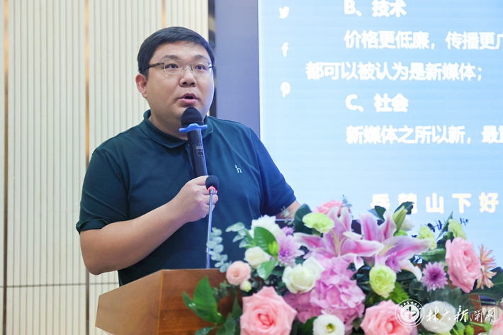 颁奖典礼后,媒体高峰论坛正式开讲。黄京分享了她多年的记者经验,她运用许多切实的事例,深刻阐释了如何在新闻报道的广袤海域中巧妙抓住重点,发现别具匠心的独特角度,避免平淡无奇的套路陷阱。王轩以岳麓山下的故事为切入口,引入新媒体概念,并提出“万物皆媒”的观点。他从时间、技术、社会三个层面剖析了新媒体的概念,并强调了在宣传策划中应当充分利用已有资源,结合本校情况进行特色传播。