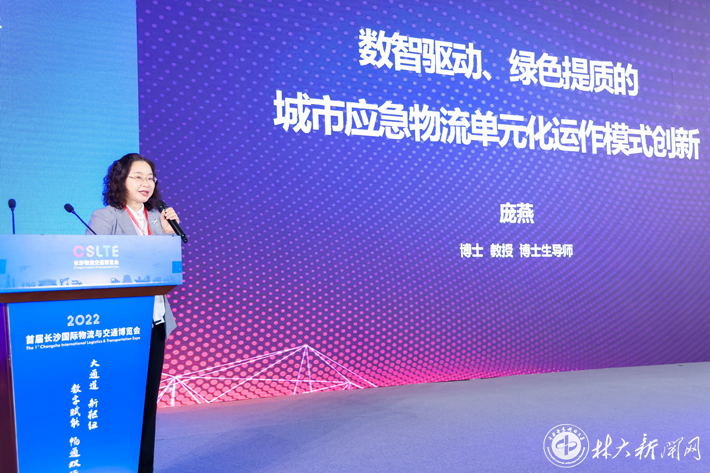 ▲庞燕教授作《数智驱动、绿色提质的城市应急物流单元化运作模式创新》主题报告