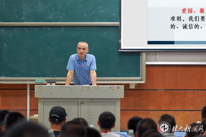 【林大网讯】(文/计算机与信息工程学院 向修竹)9月26日,计算机与信息工程学院在生科楼给2021级新生上“开学第一课”,院长谭骏珊、院党委书记严爱军向新生授课,院党委副书记何伟主持。