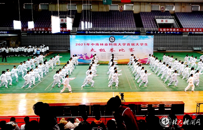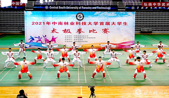 【林大网讯】(文/体育学院 彭小静)为丰富校园体育文化生活,展示体育教学成果,由学校体育运动委员会、校团委主办,体育学院承办的“2021年中南林业科技大学首届大学生太极拳比赛”12月18日--19日在体育艺术馆举行,全校20个学院组队,共计1498名选手参赛。