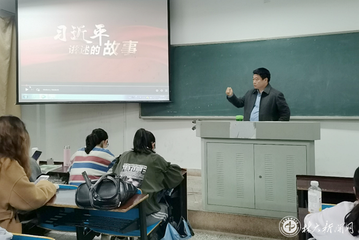 【林大网讯】(文/生命科学与技术学院) “在河北有这样一位老师,他教书育人的身影不仅出现在三尺讲台上,还常常会出现在太行山深处。习近平总书记称他是‘新时期共产党人的楷模,知识分子的优秀代表,太行山上的新愚公’,他就是我们的优秀校友——李保国”,4月7日,在2019级生态学本科生的《自然资源生态学》课堂上,授课教师王光军教授以“习近平讲述的故事”为主题,用五分钟左右的时间给同学们深情讲述了李保国教授的先进事迹和崇高精神,与此同时,吴耀辉副教授、何含杰副教授也分别以《中国共产党发展史》、《秋收起义》为主题,在讲述专业课之前给2018级生物工程1班、2班同学们上了一堂简短而生动的党史教育课。