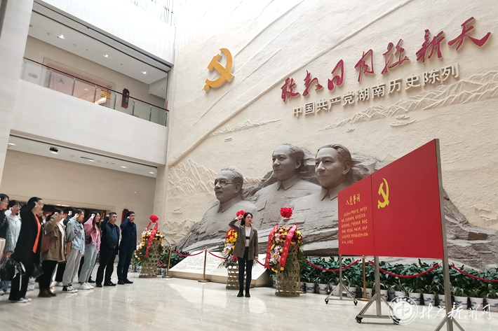 【林大网讯】(文/外国语学院 潘正午) 4月10日上午,外国语学院党委组织学生党员赴湖南省党史陈列馆开展学习教育,院党委书记李鹏飞亲自带队,学工办全体辅导员和所有学生党员参加。