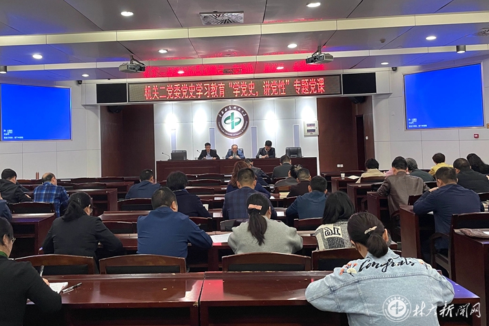 ▲机关二党委组织开展党史学习教育“学党史,讲党性”专题党课