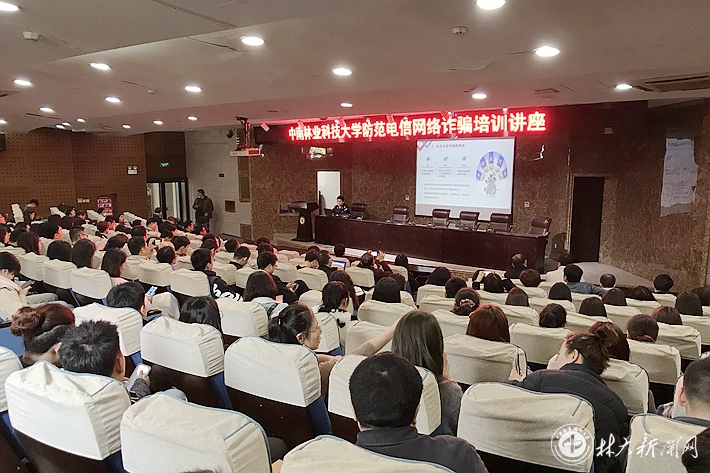 【林大网讯】(文/学工部 保卫处)4月9日上午,学校邀请长沙市公安局反电信诈骗中心在图书馆报告厅举办了“防范电信网络诈骗安全教育培训讲座”。长沙市公安局天心分局、文源派出所、文源社区等相关单位的同志,学校各学院副书记、全体专兼职辅导员、班主任代表、学生干部代表共240余人参加了培训讲座。本次讲座由长沙市公安局反电信诈骗中心吴谢彦彦警官主讲。