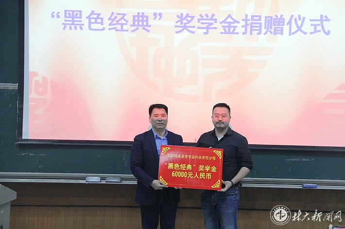 会上,校企双方举行了“黑色经典奖学金”的捐赠仪式,长沙伍爱美食公司出资6万元,在学院设立“黑色经典奖学金”,将帮助到更多的学生实现自己的梦想。(编辑/陈名虎)