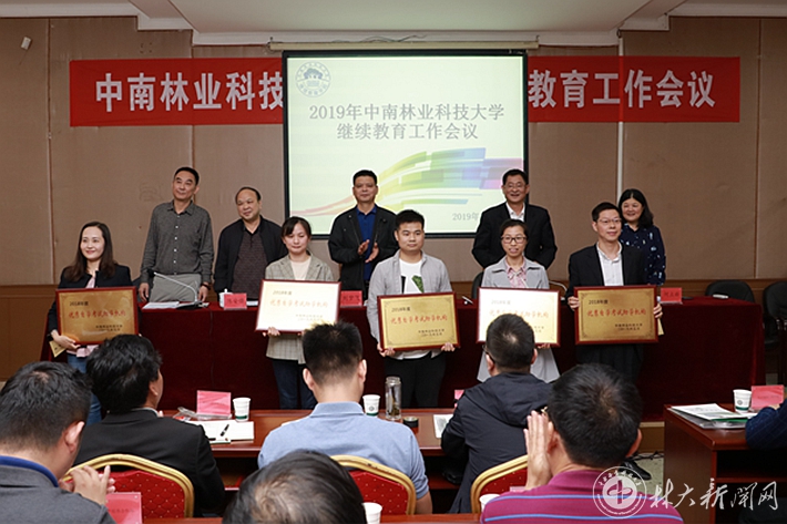 继续教育学院副院长张新武宣读了《中南林业科技大学关于表彰2018年度继续教育工作优秀函授站和自学考试助学机构的决定》,对5个优秀函授站和10个优秀自学考试助学机构进行表彰,颁发奖牌和证书。