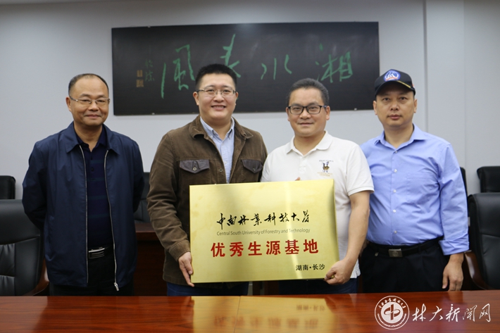 最后,潘日鸣副处长向彭向峰副校长授予“中南林业科技大学优秀生源基地”牌匾。
