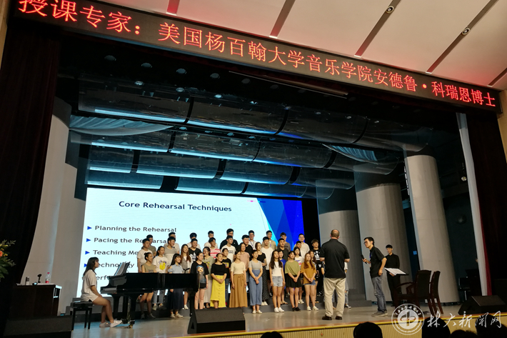 我校音乐学院的指挥专职教师和指挥专业的研究生均全程参与学习,音乐学院“林韵”合唱团作为此次学习活动的示范团得到科瑞恩博士授课的机会,并得到了他的表扬。