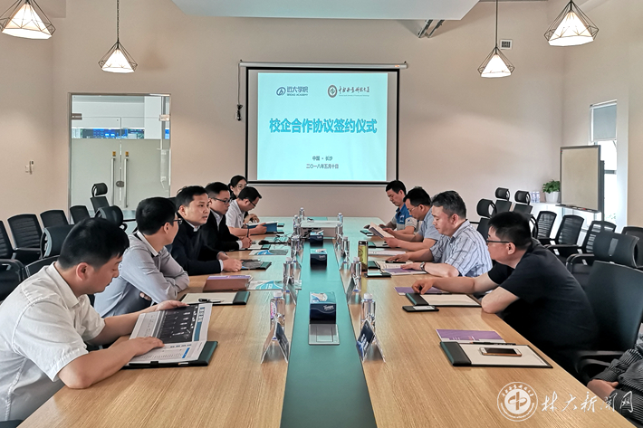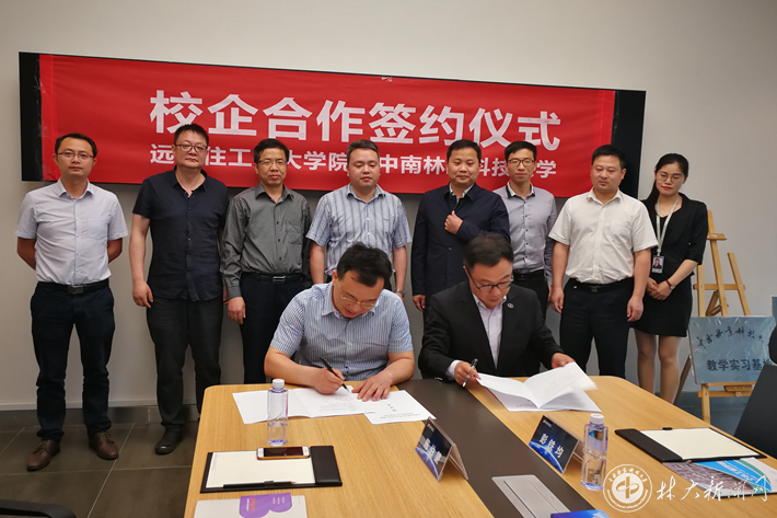 学院副院长江学良和肖在共同签署了校企合作协议。易锦和肖在共同为中南林业科技大学和远大学院研究生培养创新基地、本科生教学实习基地挂牌。