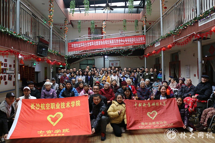 同日,校青年志愿者协会与长沙航空职业技术学院青年志愿者协会在长沙市岳麓区红枫康乐养老中心联合举办“2018元旦敬老行”活动,通过歌曲串烧、手语表演、诗朗诵、火箭军拳术等表演一次次将现场气氛点燃,温暖了老人们的心。